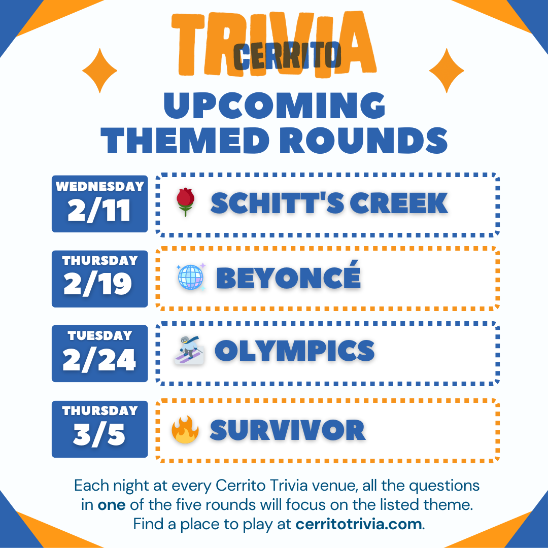 🧠 Tune in and memorize everything as best you can, because listeners are rewarded with the advantage of hearing questions that are guaranteed to be asked at future Cerrito Trivia events around town.