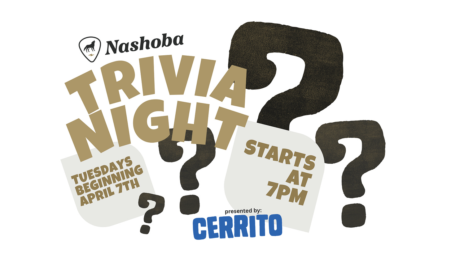 🤔 Starting on April 7 at 7 o’clock, go to Carriage Crossing in Collierville to test your general knowledge every Tuesday night at Nashoba.